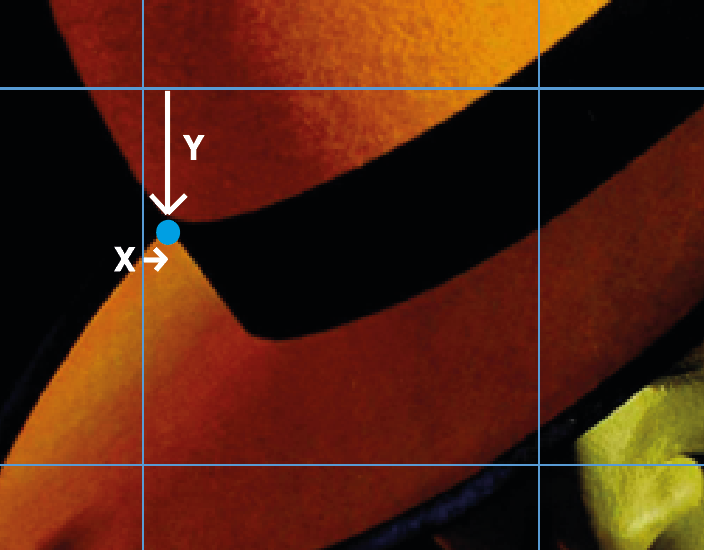 Pour placer le point bleu il vous suffira d'evaluer la distance à vue d'oeil ou de la mesurer en prenant compte de l'axe X et Y.