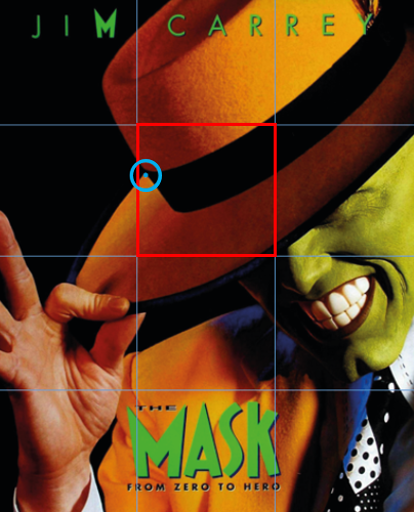 Lorsque j'ai débuté mon dessin de l'affiche du film "The Mask" (50 X 40 cm), j'ai dû être contraint de rogner l'image originale.